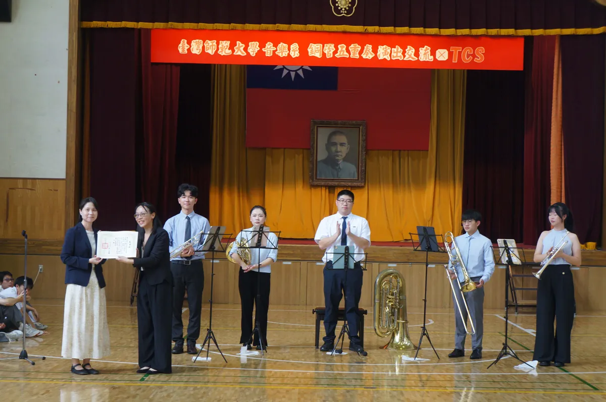 7月8日(火) 台湾師範大学の学生が来校し、金管五重奏による美しい演奏を披露してくれました。校内に響き渡る豊かな音色に、教職員・生徒一同が深く感動し、忘れられない芸術のひとときを過ごしました。