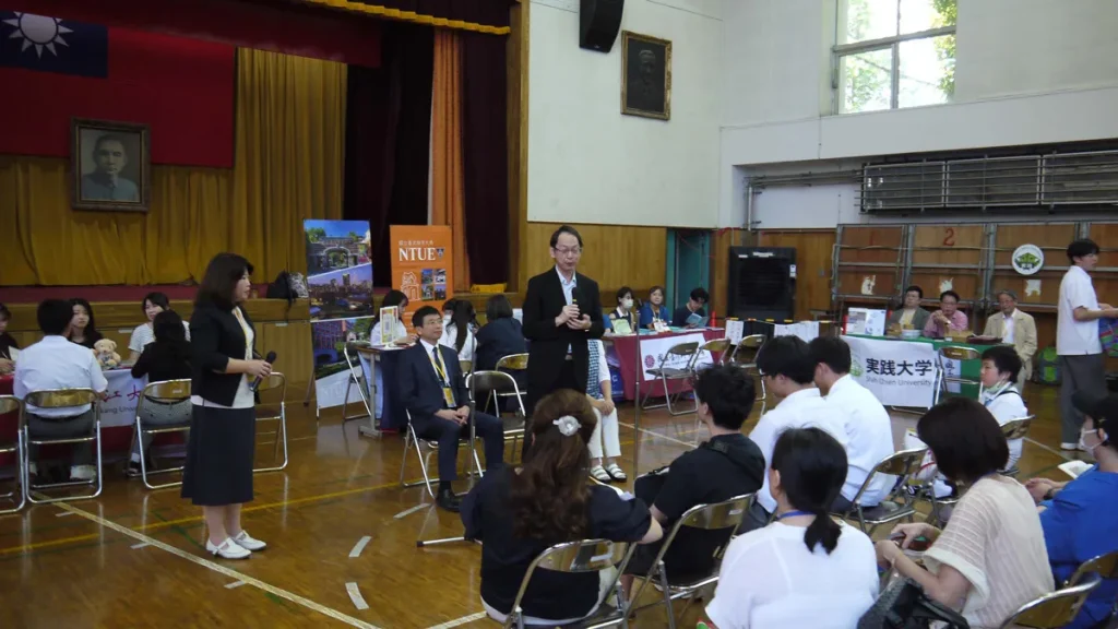 毎年開催されている台湾の大学フェスタには、今年も台湾から10校以上の大学が来校し、本校の優秀な生徒の募集を目的としてブースを設置しました。各大学は特色や学部内容、将来の進路について直接説明し、高校生にとっては進学情報の収集だけでなく、自身の興味や将来の方向性を考える貴重な機会となりました。