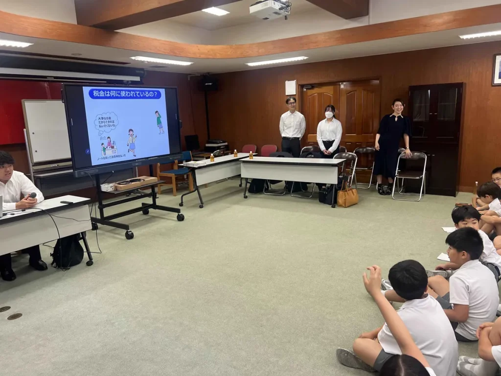 今年は初めて麹町税務署を招き、小学5・6年生を対象に、生活の中での税の重要性について講義を行っていただきました。税の種類が多岐にわたり、日常生活と密接に関わっていることを知り、生徒たちは大きな驚きを示していました。分かりやすい説明を通して、基本的な市民意識と財政・税制に関する理解を育むことができました。
