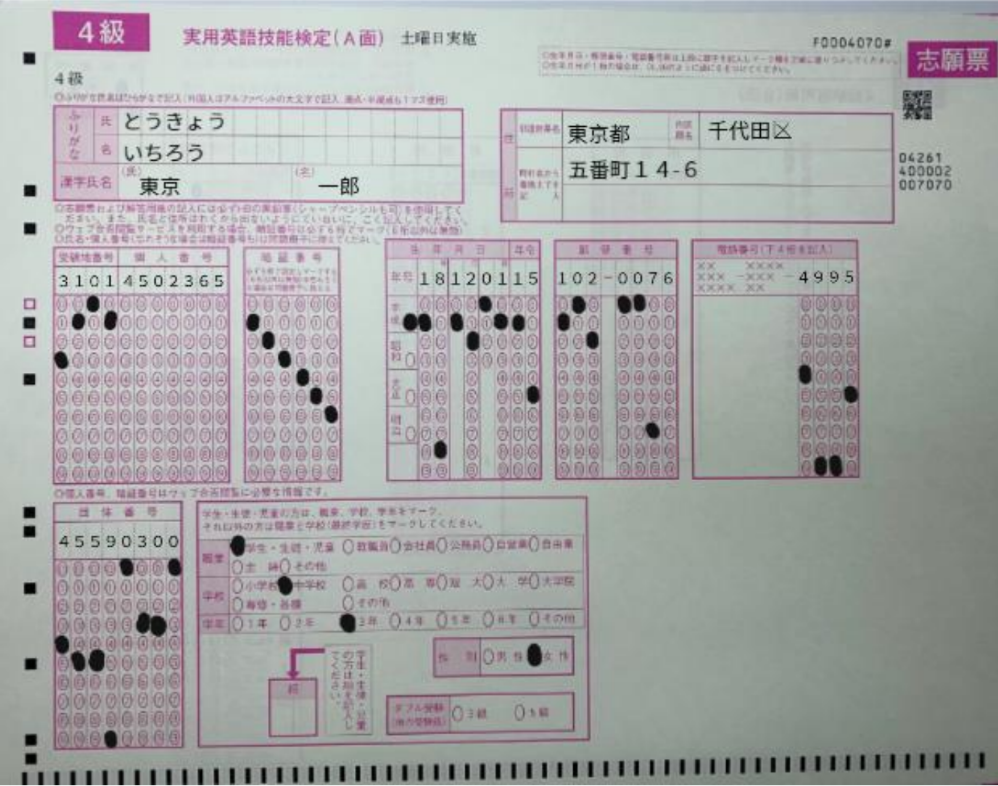 (2)練習用的志願票