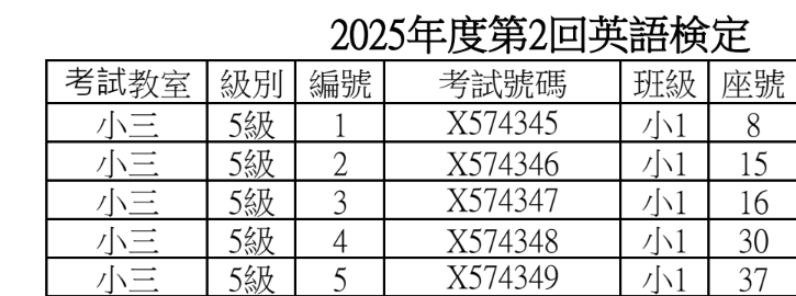 (1)准考證號碼