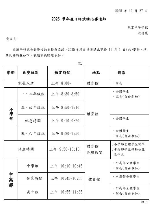 4.出缺席系統因為有些問題,上周的統計表等修正後再發部落格給家長們確認。
