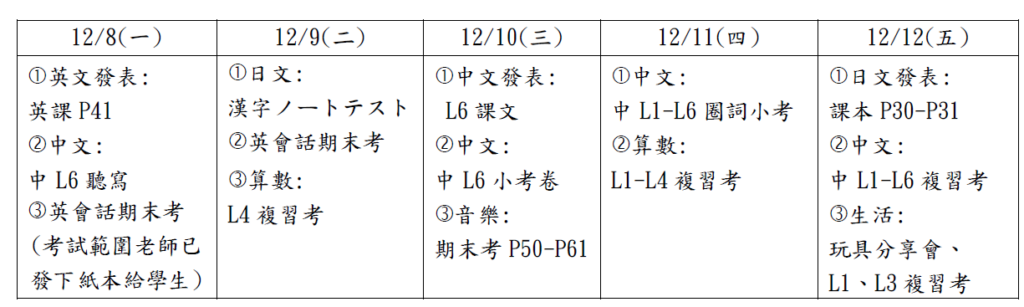 1.英會話今天有些小朋友沒有帶考試的紙,請明天記得帶來考試。另外老師發下英語演講比賽的演講稿,禮拜四老師會帶著大家練習,第三學期開學會選拔英語演講比賽選手。