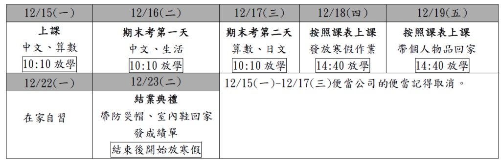 2.音樂、體育期末考已結束,英會話期末考剩下幾位小朋友下周一要補考(已寫聯絡簿),請這幾位小朋友好好準備。