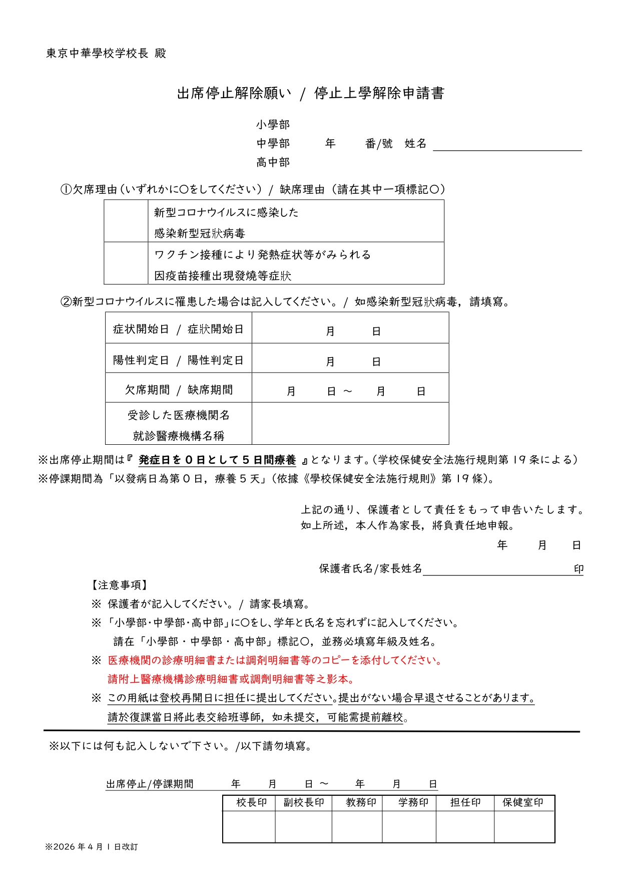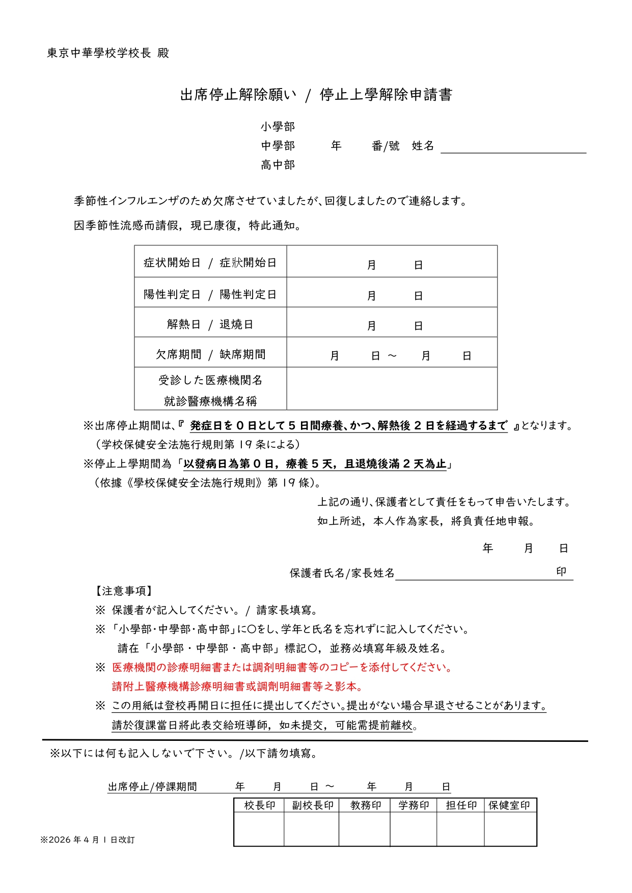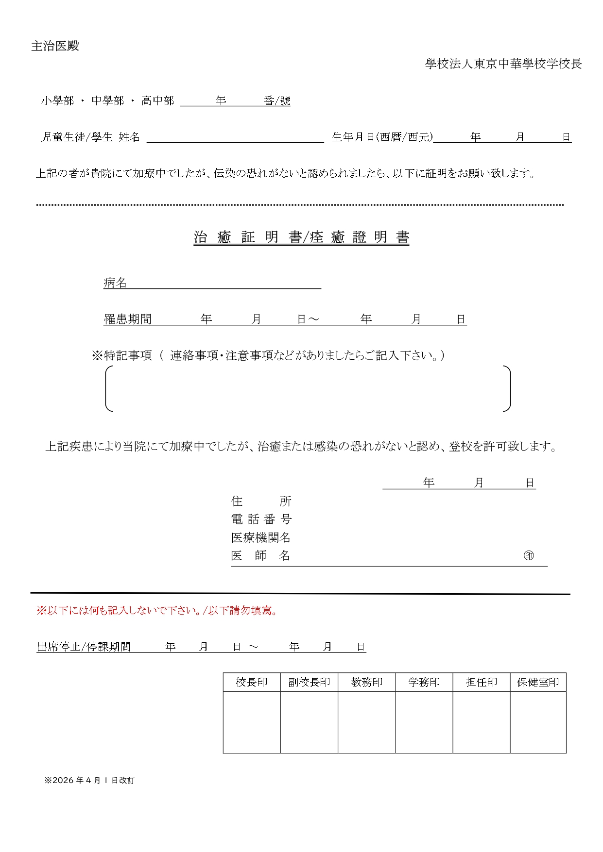 東京中華學校2026學年度小學部一年級