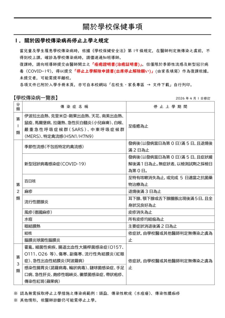 • 4/9(四)保健室通知