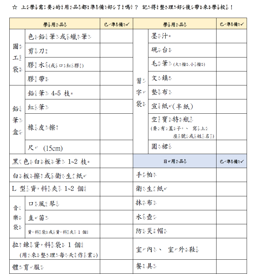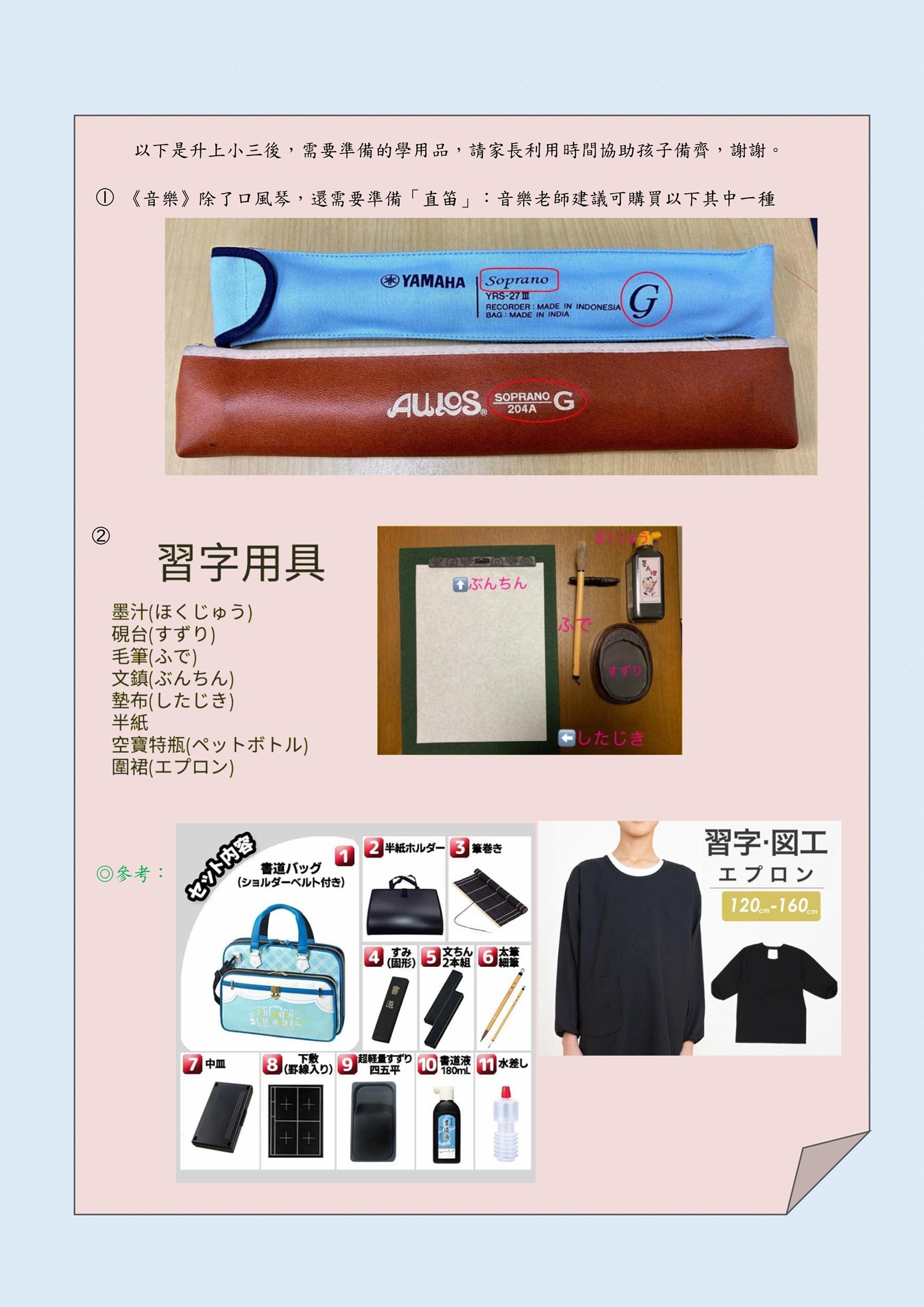 2、學用品: