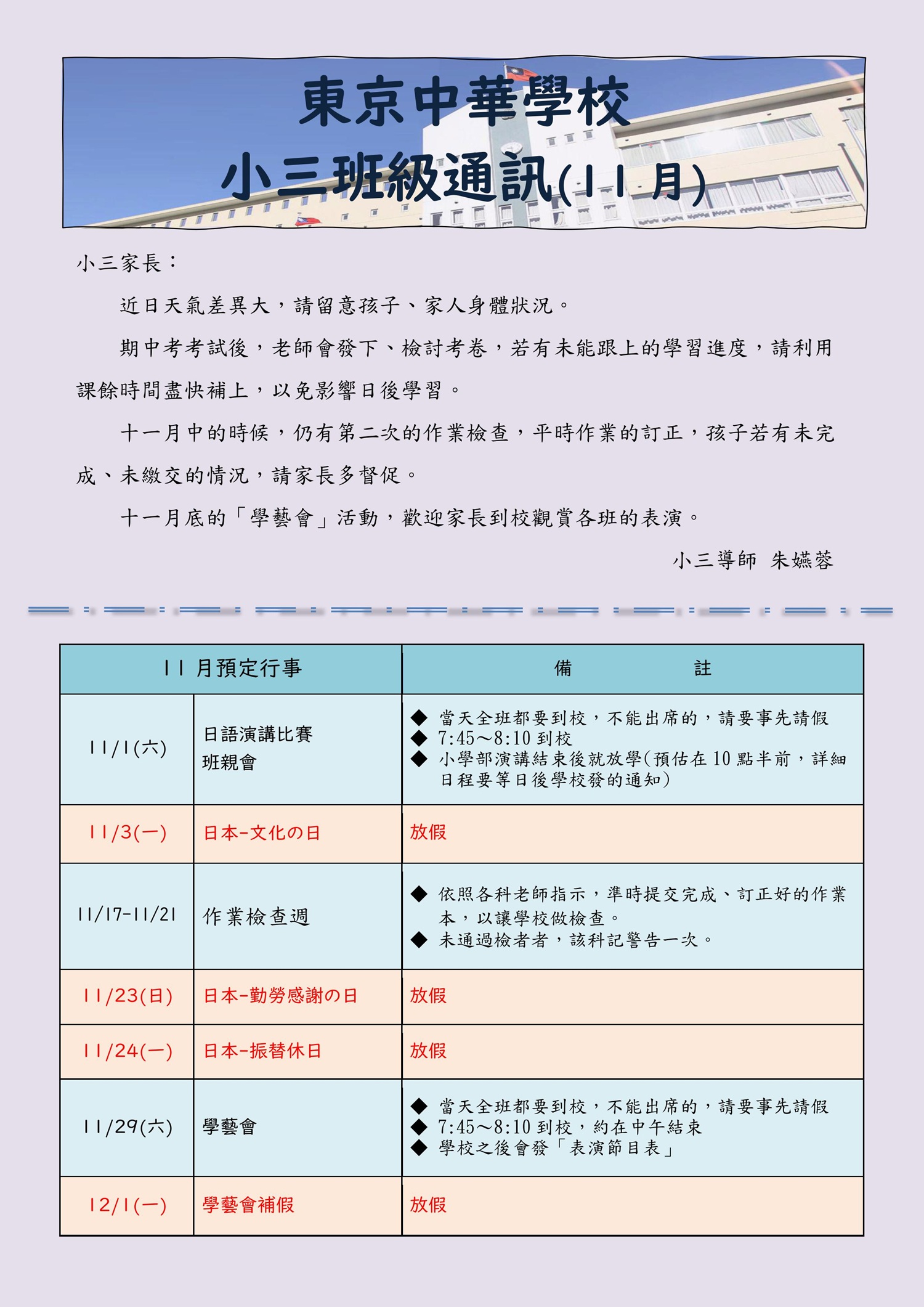 二、下星期(11/4)正式換穿冬季制服,請遵守學校規定穿著。(換季通知)