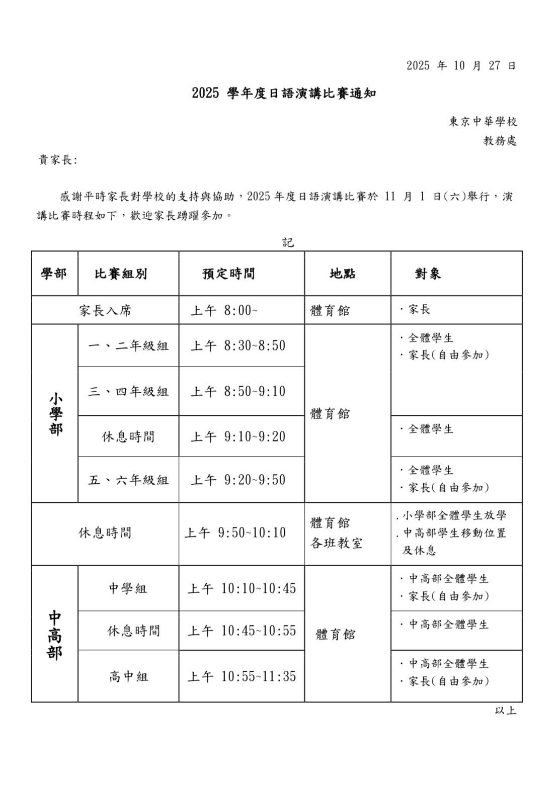 ◆ 7:45~8:10到校。10:30前會放學回家。