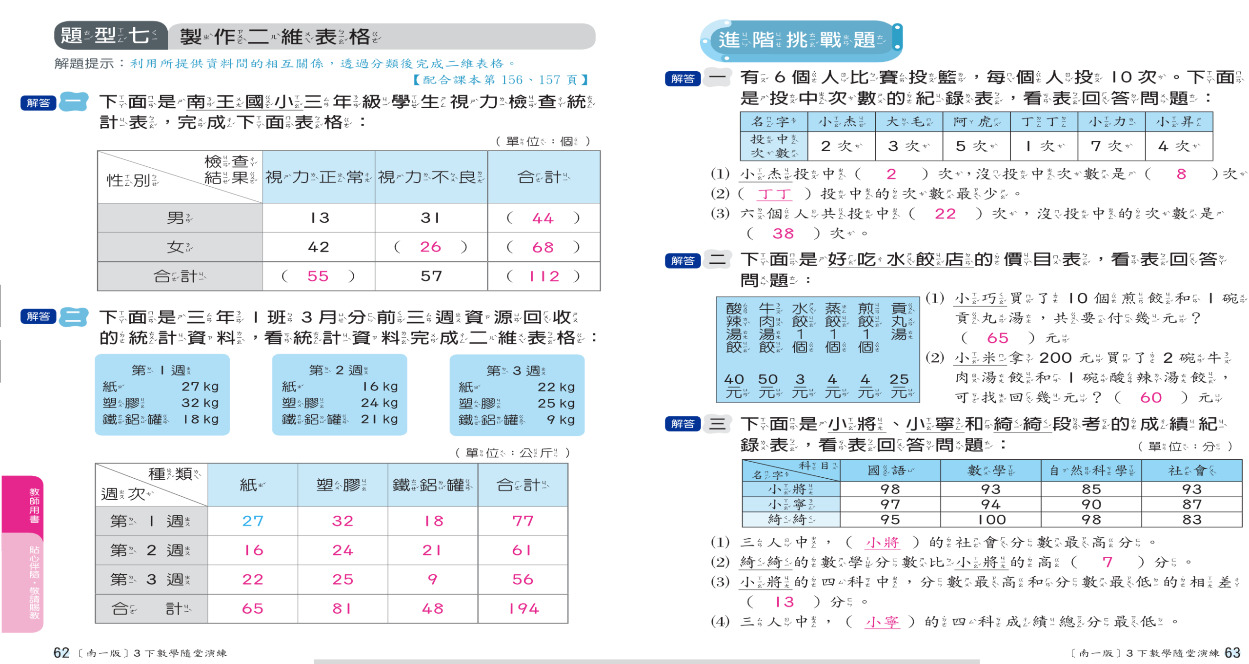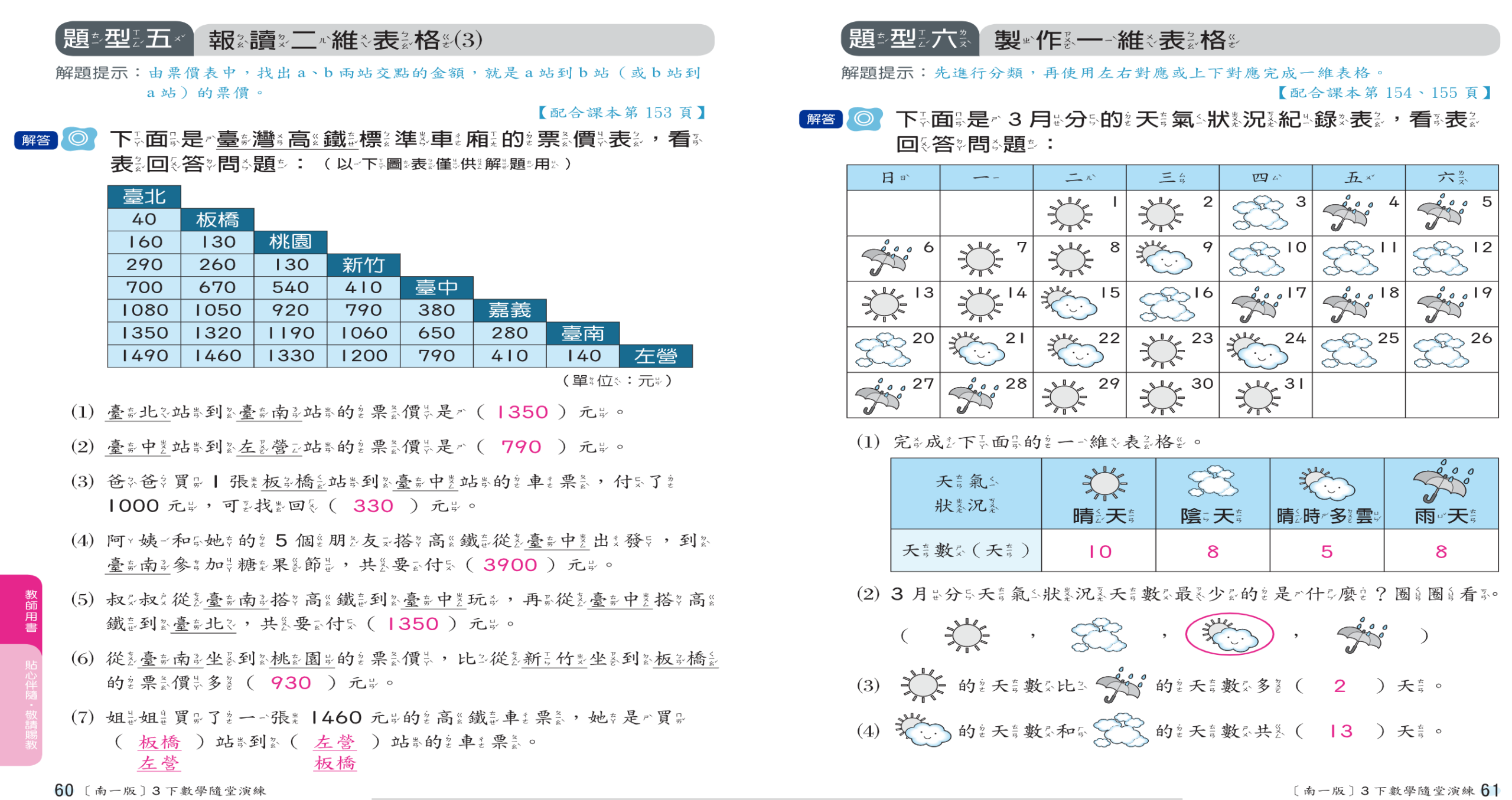 ☆數習、數隨→今天在課堂未完成的部分,請利用這幾天或春假時找時間自行完成,完成後自行對答案。