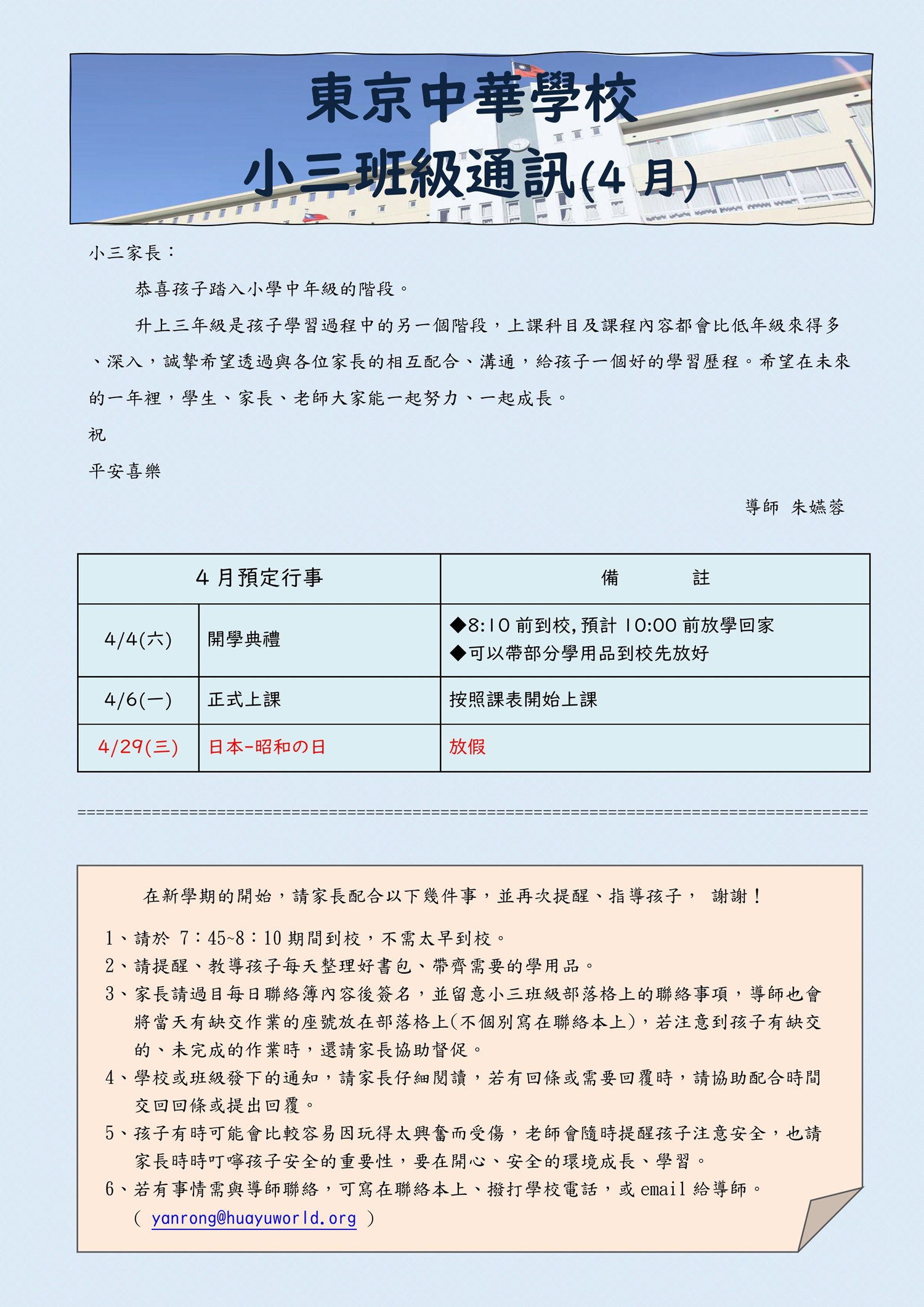 【聯絡事項】