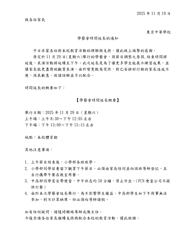 - 已發第三學期繳費單, 繳費期限為12月19日.