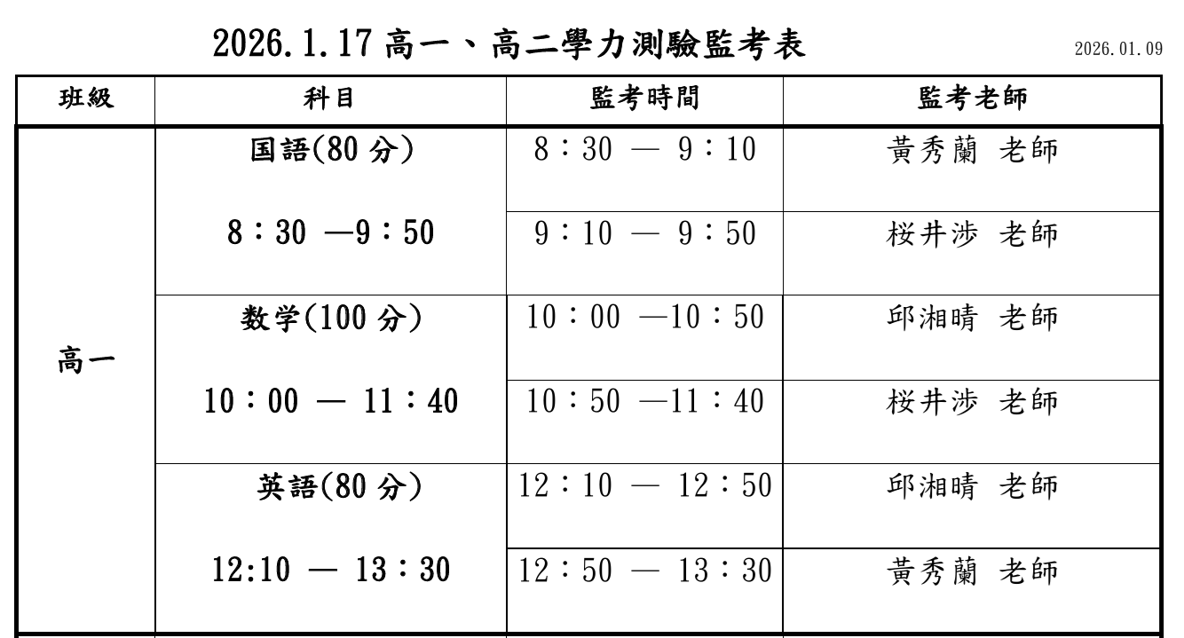 5.調課: 2/4(三)第三節改上現代日文, 2/13(五)第四節上言語文化
